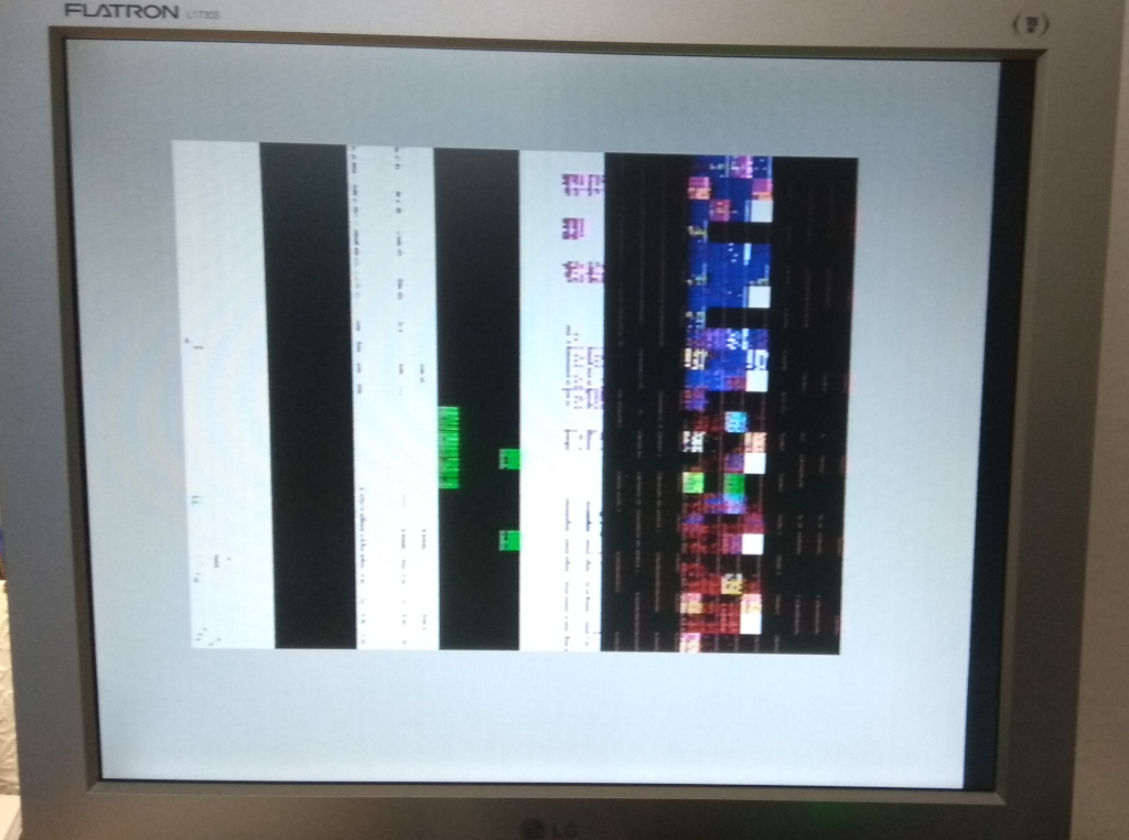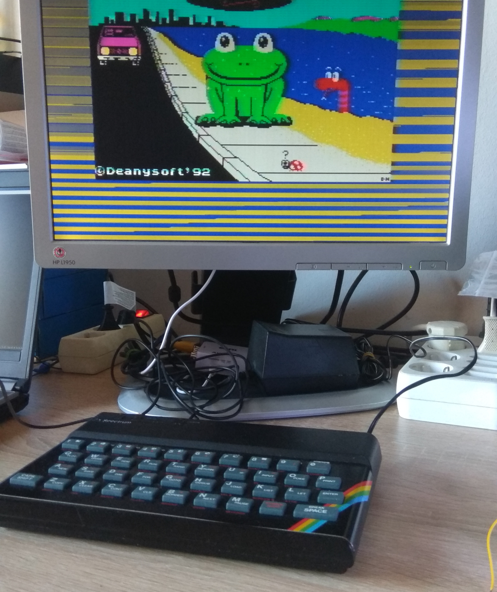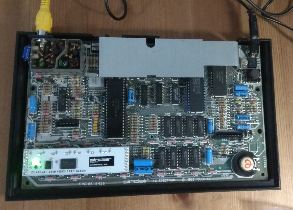 At end of the last year I was able to buy a ZX-Spectrum computer which did not work correctly. The main problem was that it could not provide proper video signal. The seller sent me a photo about the problem - see image on the right. I thought it could be one of three possible problems: video builder circuit (ULA), video memory corruption or power supply problem. If the ULA is wrong, then purchasing it is a difficult task. But fortunately the problem was with the -5V power - the second photo shows that the computer is working properly with the original capacitors, if I change the video memories to special static memory card which does not use -5V. After I 're-capped' all the electrical capacitors on the board, then the problem was solved immediately with the original DRAM memories.
